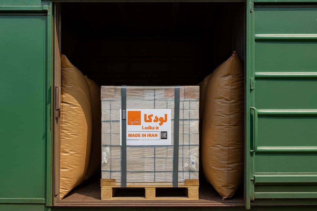 - تکنولوژی ساده: استفاده از کیسههای هوا (Dunnage Bags) بین پالتهای کاشی. این کیسهها فضای خالی را پر میکنند و مثل ایربگ خودرو، ضربات ناشی از ترمز قطار یا اتصال واگنها را جذب میکنند. هزینه این کیسهها در برابر خسارت شکستن کاشی، ناچیز است.